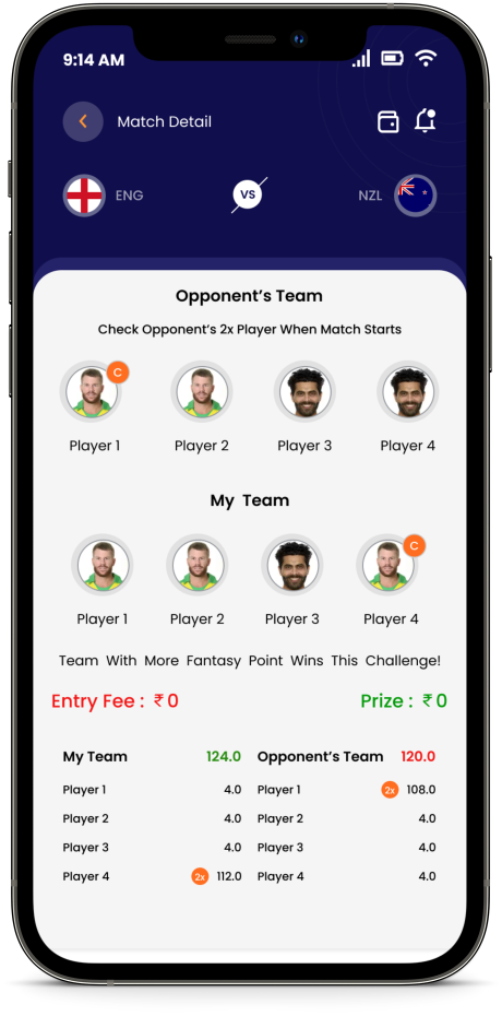 The most unique part about h2h fantasy Fantasy game is that here you can create your team with just 2 or 3 or 4 Players. No Credit Limits, No Player Type Limits, just choose the players you think will do well for you in a game and start challenging others and win money.For those who love the 11-player Fantasy Game, the 11-player Fantasy mode is also LIVE on the app. Please download the latest version of the app to play 11-player Fantasy.