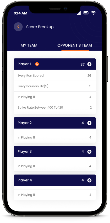 You can check your player points by clicking on “VIEW BREAKUP” button on the active challenge card.