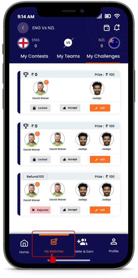 If the challenge is not accepted by any of the opponents, it will be considered EXPIRED and the challenge amount will be credited to your wallet.
