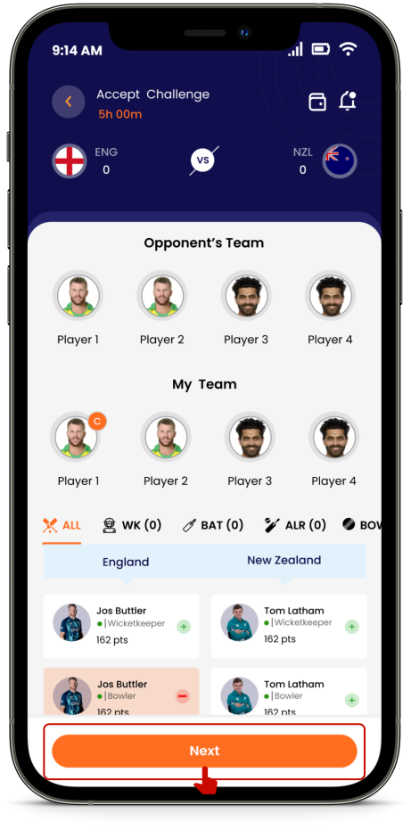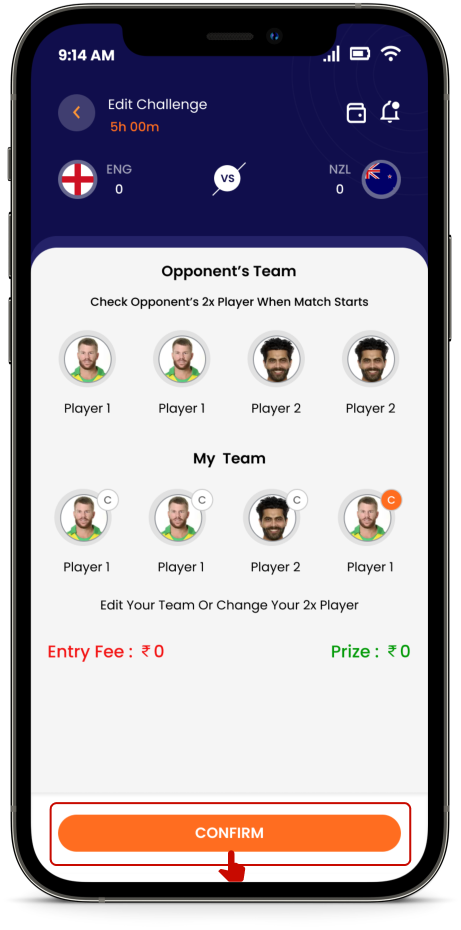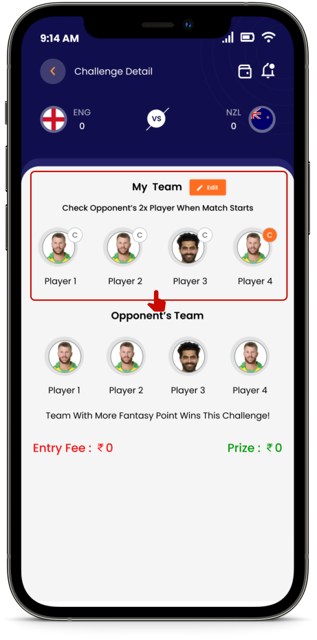 While creating or accepting a challenge you will see the option of selecting a “STAR PLAYER” in your team. This star player has a 2x value and all the points scored by your “STAR PLAYER” will be doubled in the game to give you a better chance of winning.